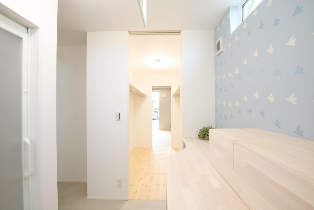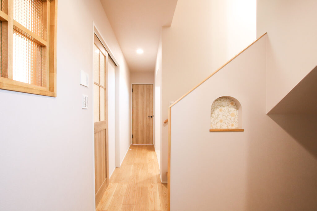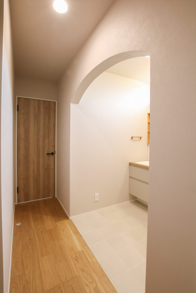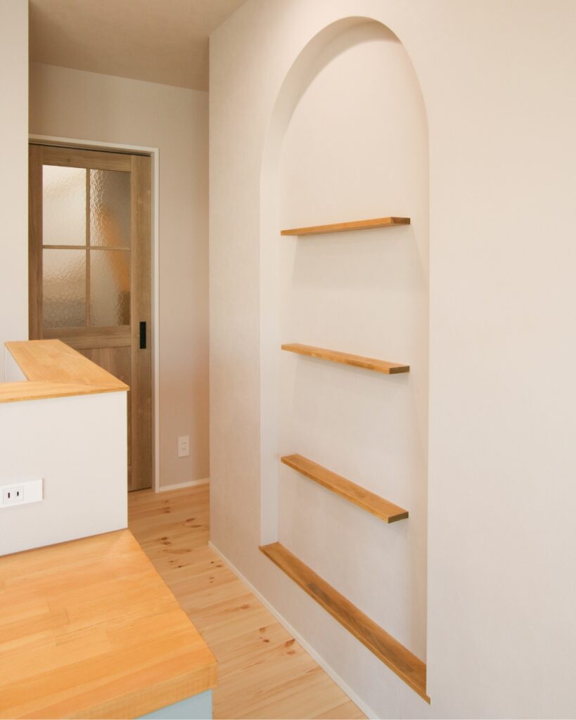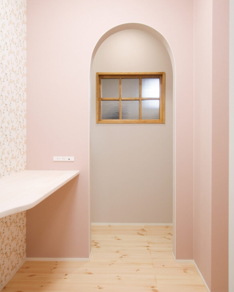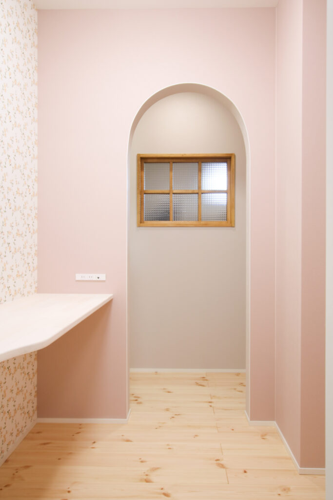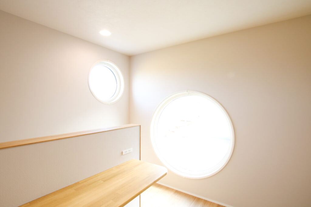 丸窓が印象的な外観デザインも、家全体の雰囲気を柔らかく演出しています。