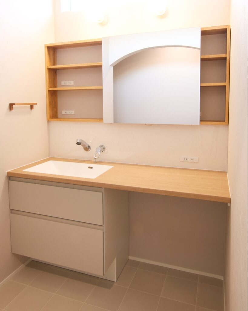 洗面台のミラー収納は、ご家族様の生活スタイルに合わせ
